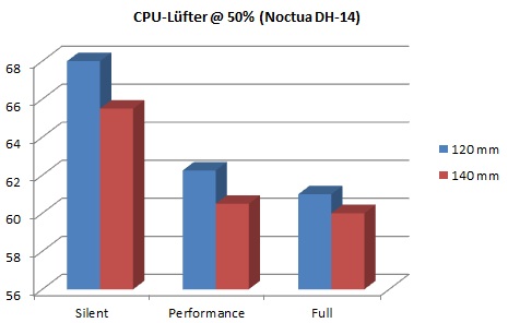 Silent (750RPM): 68 °C (10 Min: 62,75°C, 20 Min: 67,5°C)