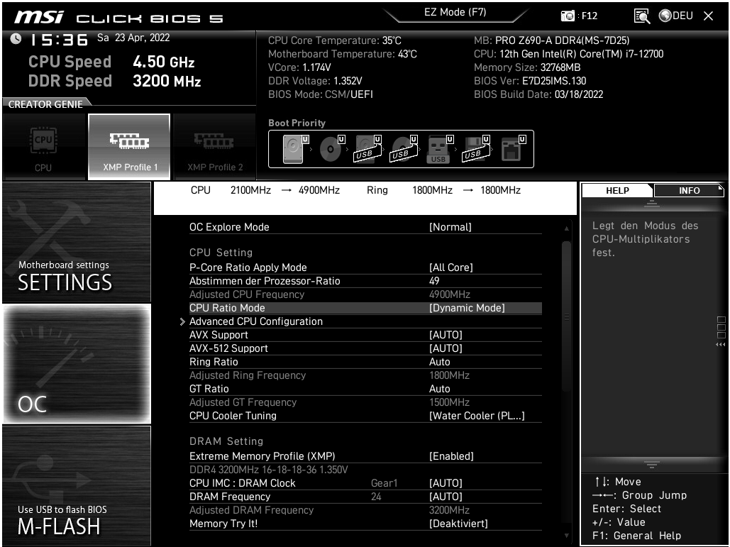 ich habe mir frisch ein System zusammen gebaut und bin jetzt etwas verwirrt, dass ich trotz freien Powerlimit und 2 Mainboard Einstellungen (siehe Screenshot) die CPU nicht mit allen P-Cores auf x49 bekomme (sondern x45). Sogar im Cinebench23 Singlecore taktet sich der genutzte Kern lieber auf unter x49 (nur Cinebench offen). Ich hatte es bisher immer so vernommen, dass das mit den nicht K Modellen funktionieren sollte - hab ich mich verlesen, Fehler im Bios?