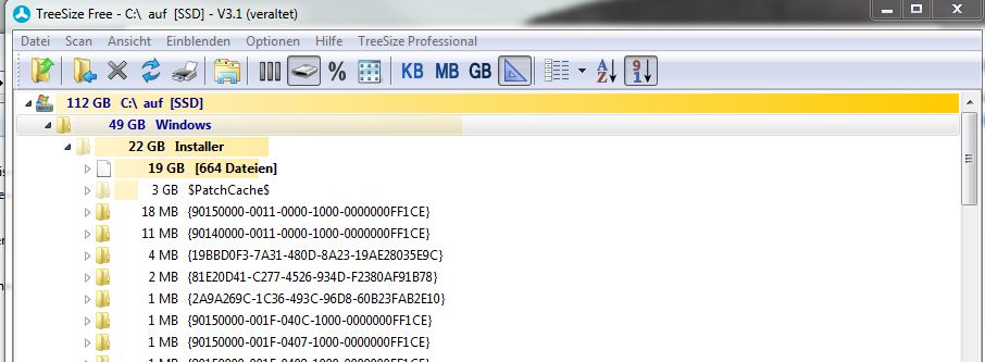 Ich habe mal mit dem Programm Treesize nachgeschaut, was den Windows alles so vollgemüllt hat...
