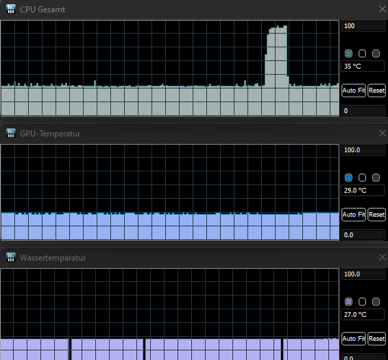 Die Wassertemperatur hatte ich extra mit in den Graphen. Die ändert sich nicht stark. Lag bei ständigen Tests unter 30°C.
