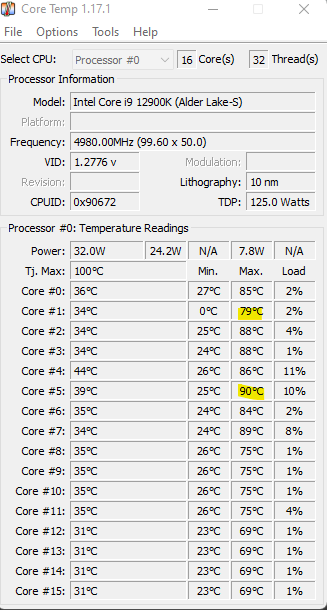 Kann mir mal bitte ein Besitzer eines Alder Lake oder Vorgängers (auch 11900k etc.) bestätigen, dass es bei Intel noch immer normal ist, dass zwischen kältestem und wärmsten Kern nach Vollast (Cinebench) über 10 Grad liegen können? Bei mir hat z.B. P-Core 2 maximal 72 Grad und P-Core 3 maximal 83.