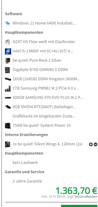 Ich habe ein Bild von den Komponenten die ich mir holen möchte und wollte nochmal nach Verbesserungsvorschlägen fragen.