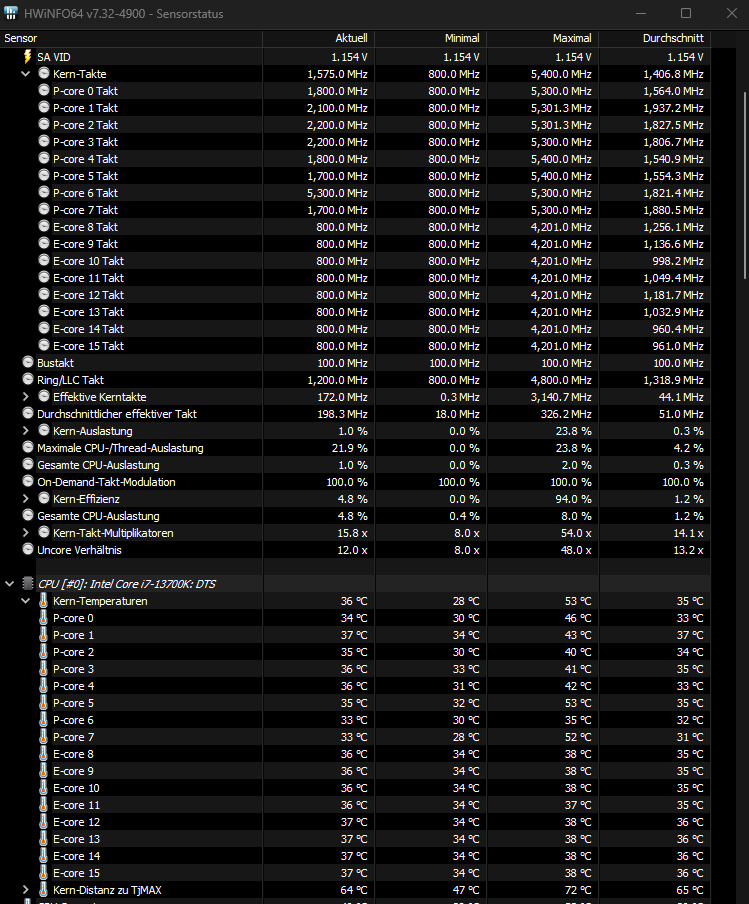 Ist es normal, dass es für meinen Prozessor irgendwie nur 800mhz oder Vollgas gibt? Wenn ich den Energieplan auf "Energiesparmodus" stelle, taktet der CPU inkrementell runter - unter ausbalanciert entweder 800mhz oder 5,4/5,3 für P, 4,2ghz für E (i.e. ganz oder gar nicht).