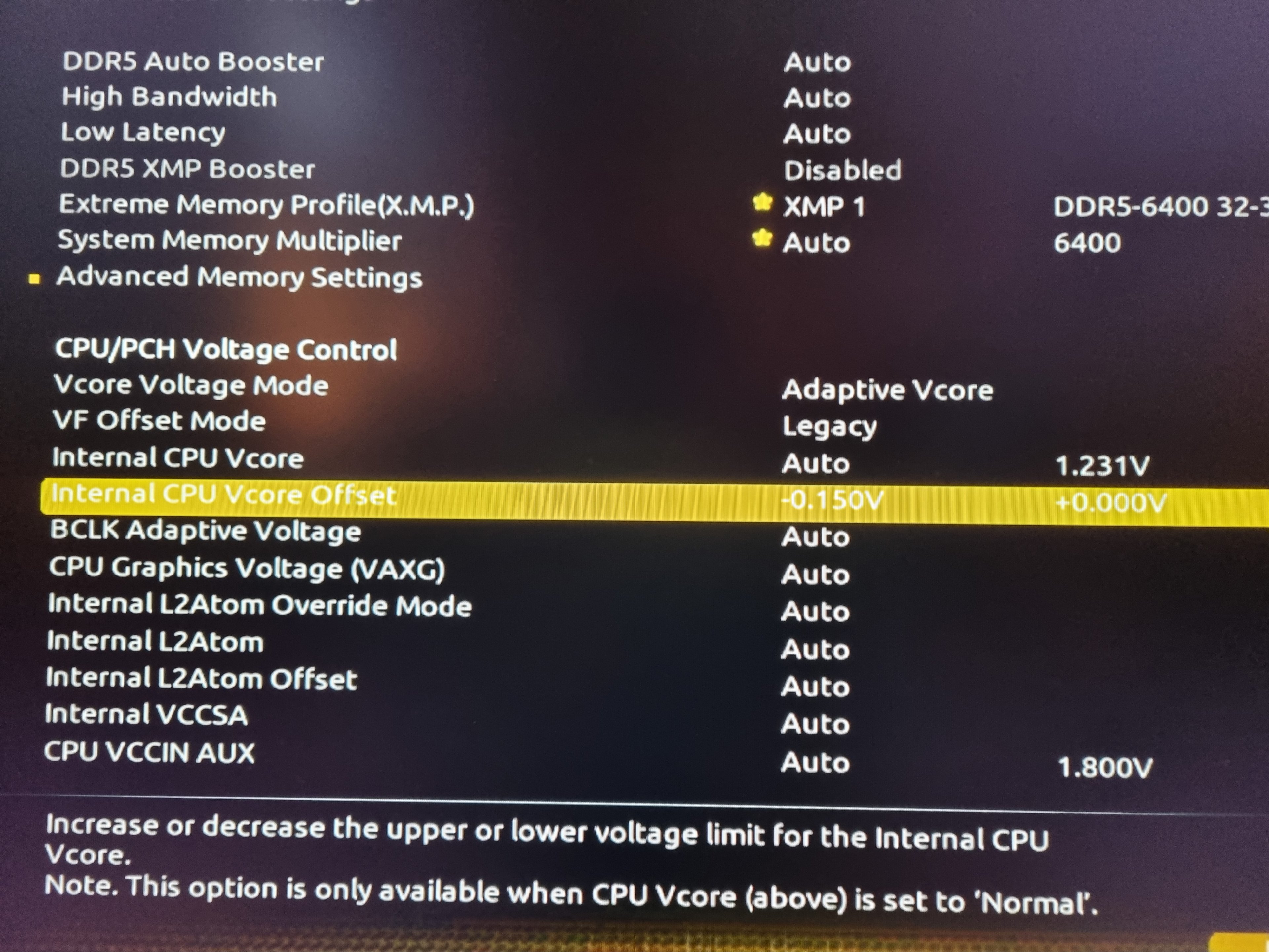 Hier lese ich dass manche runter auf 1.22V sind und stabil läuft, in YT machen die meisten 1,33V und -0,120V.