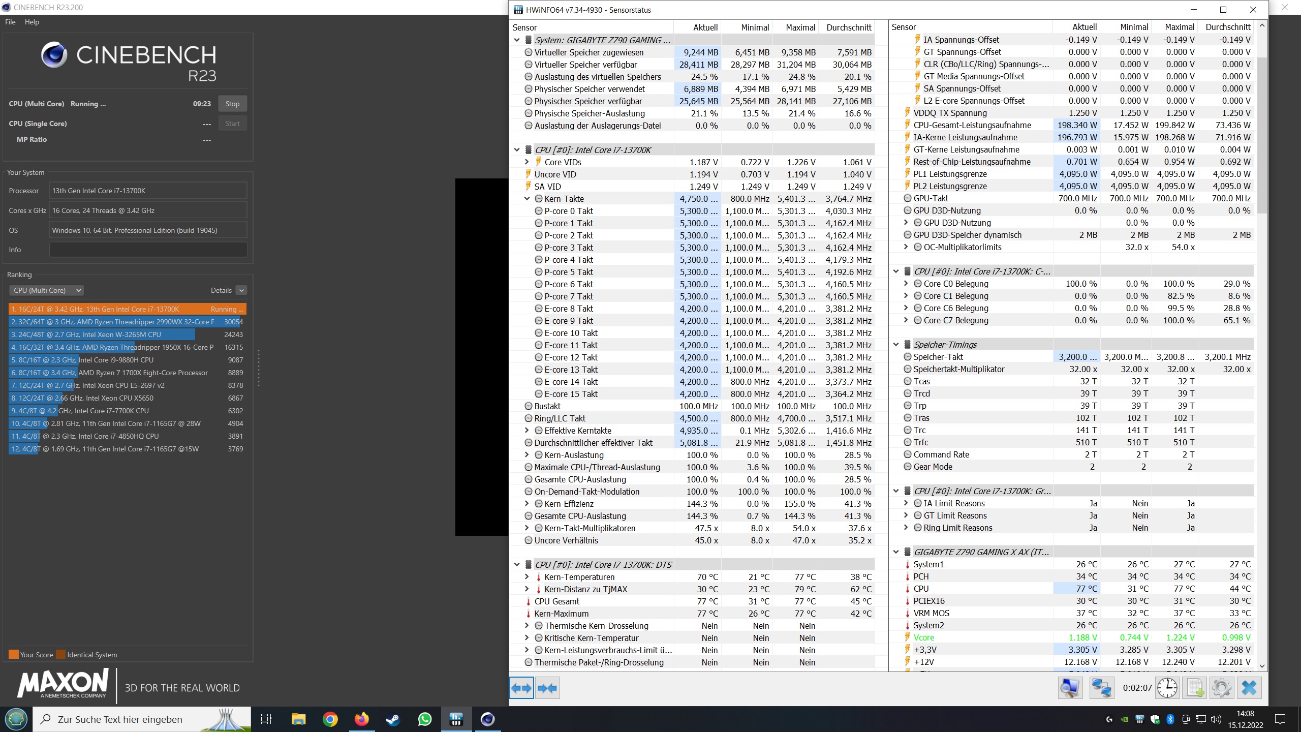Jedenfalls habe ich ein 13700k auf einem Gigabyte Z690 Aorus Elite DDR4, gekühlt durch eine Custom Wakü (Ultitube D5, 2x 360mm Radiatoren, CPU Kühler ist ein Alphcool Eisblock XPX)