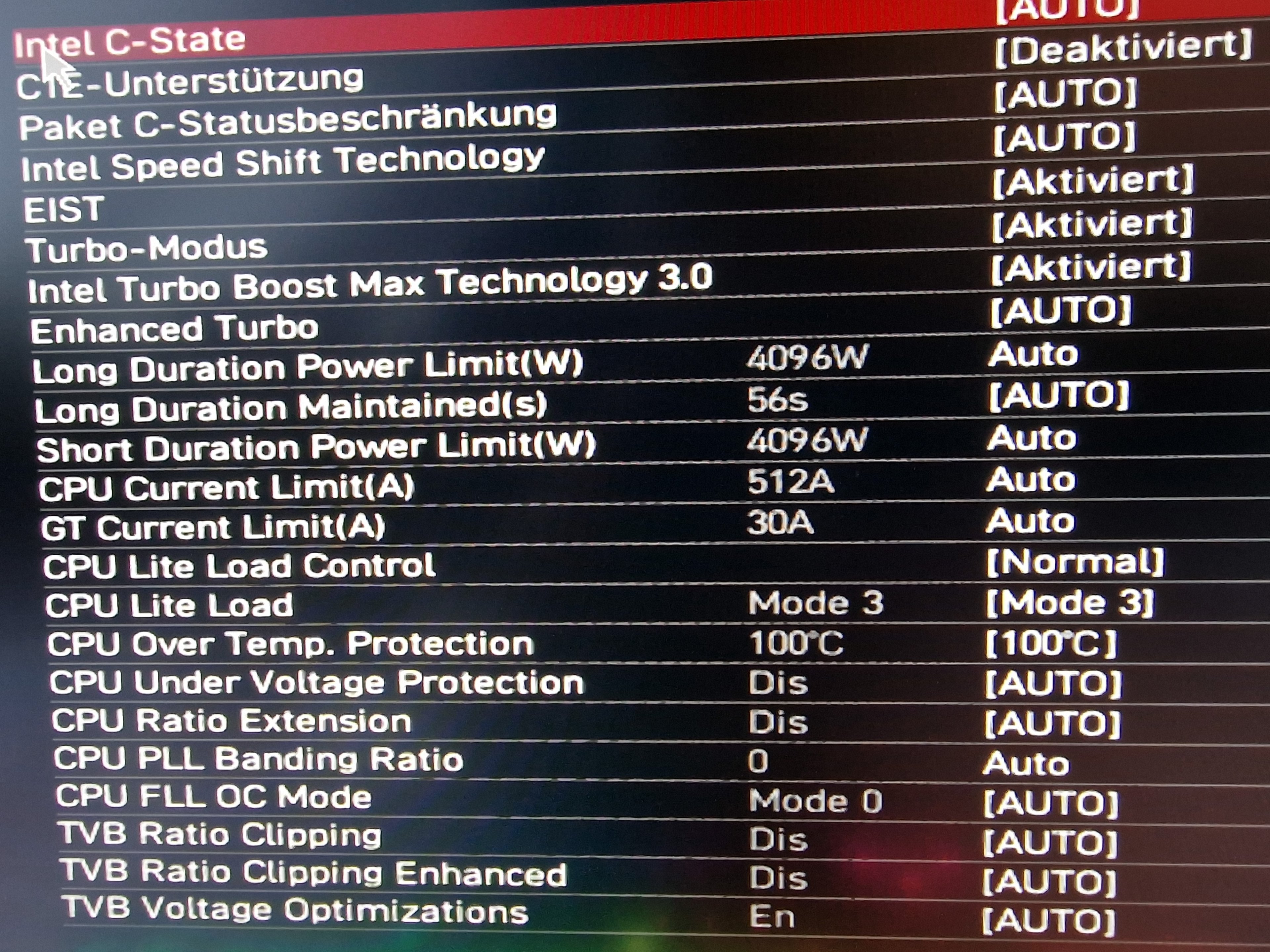 prinzipiell sehe ich das genauso, bei Lite Load 3 (MSI Z690 Tomahawk DDR4+IA CEP disabled+12900k) geht es beim mir bis 160+W PL1/PL2 stabil, ab ca. 170W PL1/PL2 -> Abstürze in CB23waschbärchen schrieb:Ich bin mit dem Lite Load Feature echt zufrieden..mehr braucht es für mich nicht!