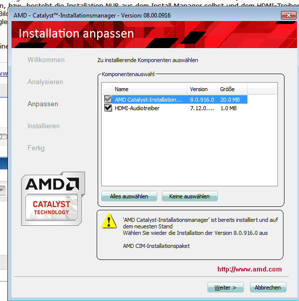 da ich in DA:I gerne Mantle nutzen möchte brauche ich den 14.11.2 Beta Treiber, doch der lässt sich nicht installieren, bzw. besteht die Installation NUR aus dem Install Manager selbst und dem HDMI-Treiber, alles andere, inklusive Bildschirmtreiber, fehlt als Auswahlmöglichkeit komplett.