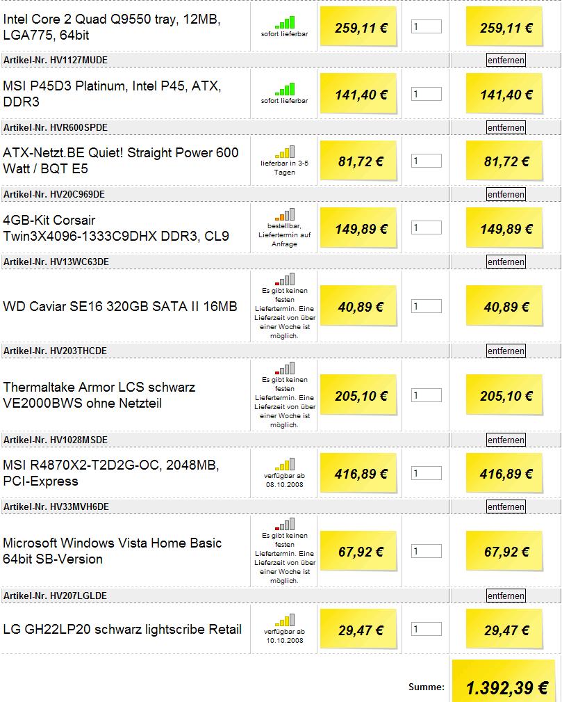 Beim Speicher/Cpu hab ich noch ne Frage und zwar wirst du übertakten? Wenn ja nimm mindestenz DDR2-800 besser 1066 , wenn nicht reicht auch DDR2-667 würde aber trotzdem zum 800er greifen
