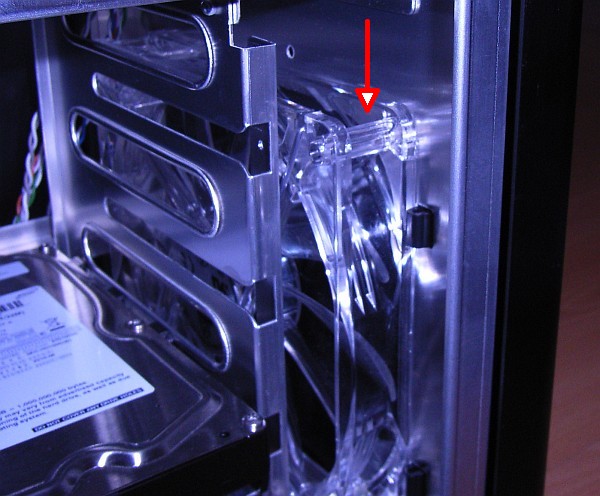 Der serienmäßige 140mm Gehäuselüfter von Lian Li ist nicht der Leiseste. Er macht sich mit hörbarem Rauschen und leichten Vibrationen bemerkbar. Fürs Erste habe ich den Lüfter mit Speedfan auf 300 U/m heruntergeregelt, so dass er nun - bis auf ein sehr leises Rauschen - nicht mehr stört. Langfristig hätte ich gern eine andere Lösung: einen 140er-Lüfter mit blauen LEDs, der auch bei 1000 U/m nicht brummt, dröhnt, rattert oder vibriert, und dessen Gehäusebohrungen die Montage von Gummi-Entkopplern ermöglichen. Hab's schon mit den Xilence Rubber Screws long probiert, aber keine Chance.