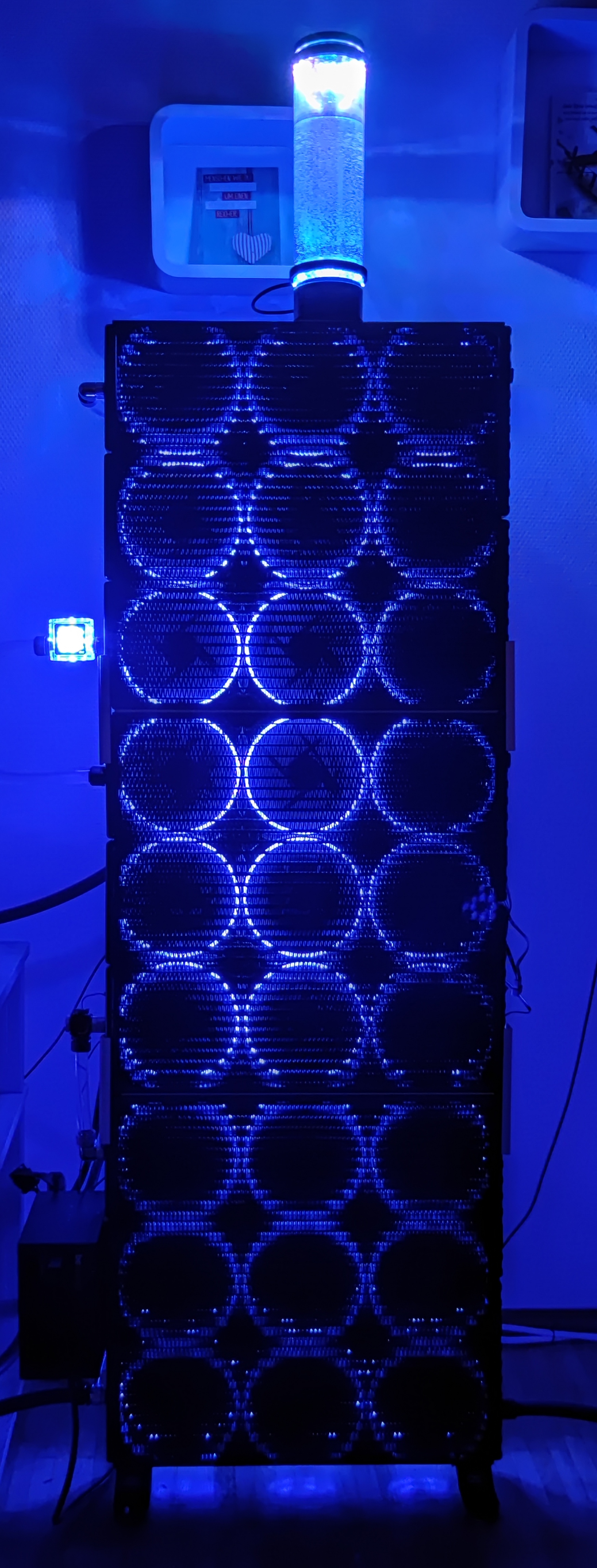 Bei mir sind es in der Front 3x 140PWM, Deckel 2x 140PWM, Heck 1x 120PWM, CPU Lüfter 2x 120PWM und Grafikkarte 2x 120PWM...