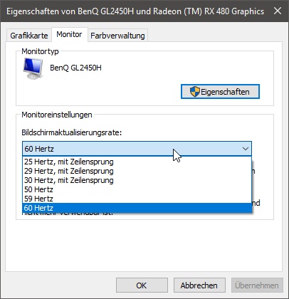 gestern Nacht habe ich meinen PC heruntergefahren und aktualisiert. Als ich ihn heute hochgefahren habe, hat er diese Updates installiert und als ich auf dem Desktop angekommen bin, stand dort, dass auch der AMD Treiber aktualisiert wurde. Jedoch hatte ich nur 60 Hz. Auch in den Monitoreinstellungen (also diesem Drop-Down-Menü) ist das höchste, was ich auswählen kann, 60 Hz. Allerdings weiß ich nicht, ob Windows den Monitor richtig erkennt, da es kein Erkennungszeichen des Monitors bei "Monitor erkennen" gibt. An den Einstellungen habe ich seit dem Herunterfahren nichts geändert.