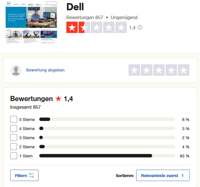 Ich arbeite selbst bei einem Dell Partner und kann den Support daher gut beurteilen.Tr8or schrieb:Nach Ansicht der Bewertungen bei Trustpilot bin ich da anderer Meinung.
