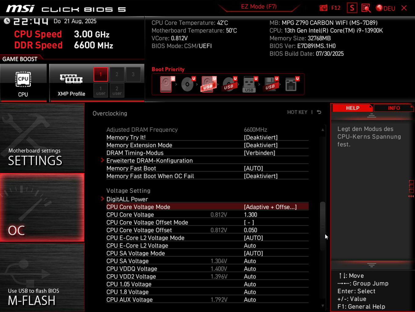 Ok, wenn ich AC/DC Loadline 1.10 Ω manuell einstelle (ggf. der deaktivierte Boost)