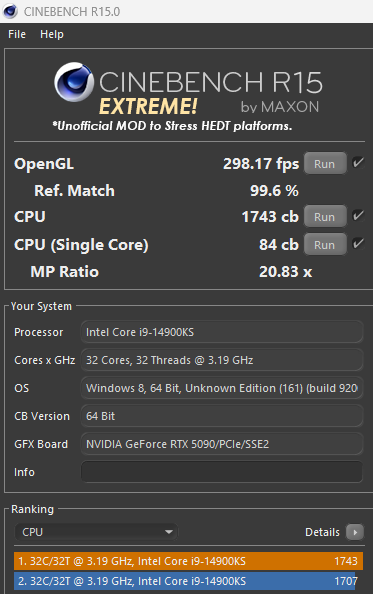 Aktive P-Cores | Intel-Logik (14900KS) | Angepasst für 5,9-GHz-Cap | Ergebnis