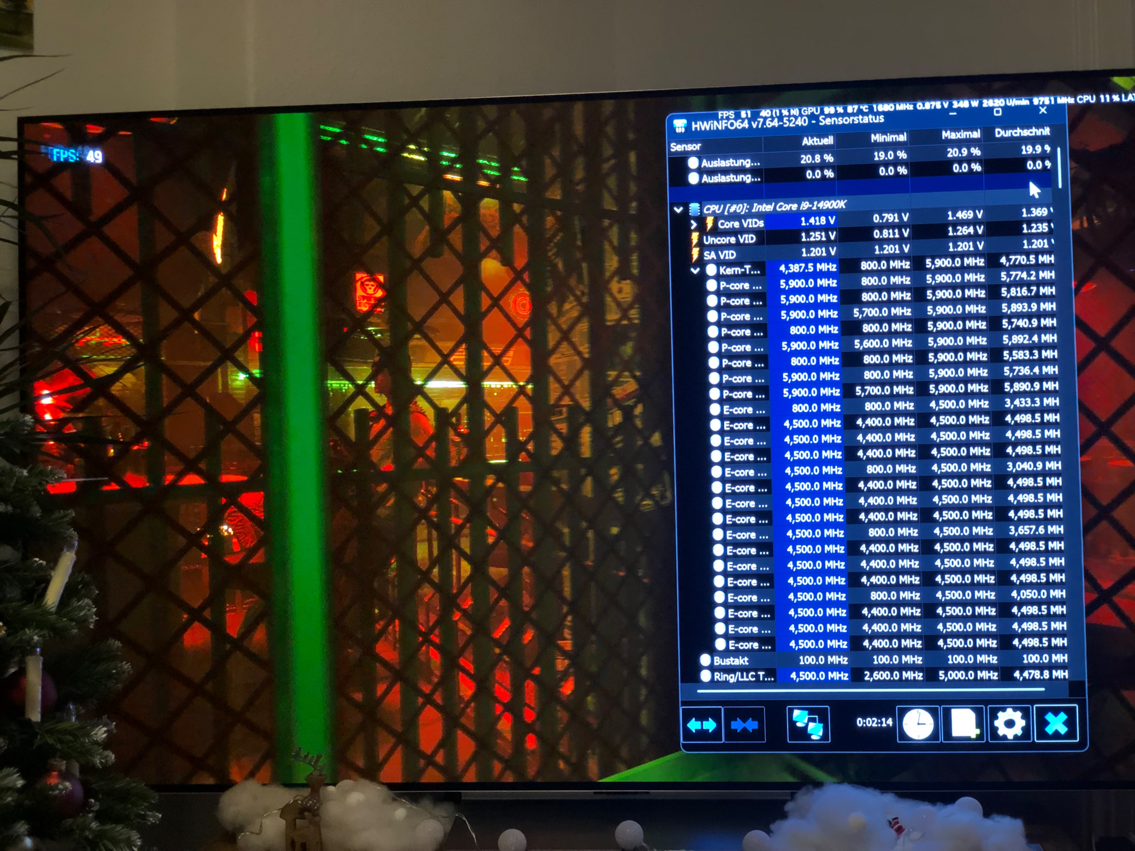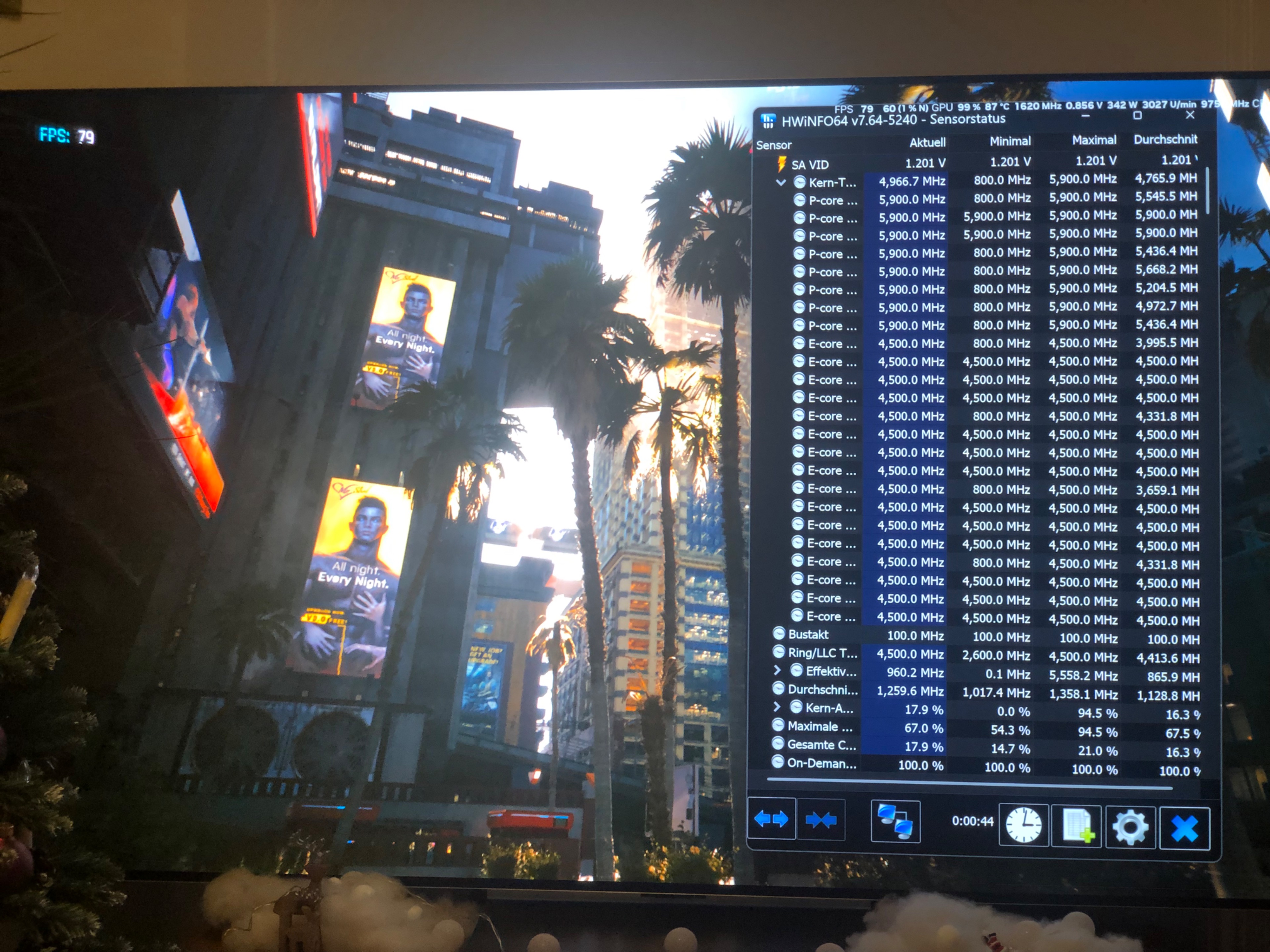 Mit Last auf alle Kerne sind es nur 5,9 GHz und da taktet nichts runter.