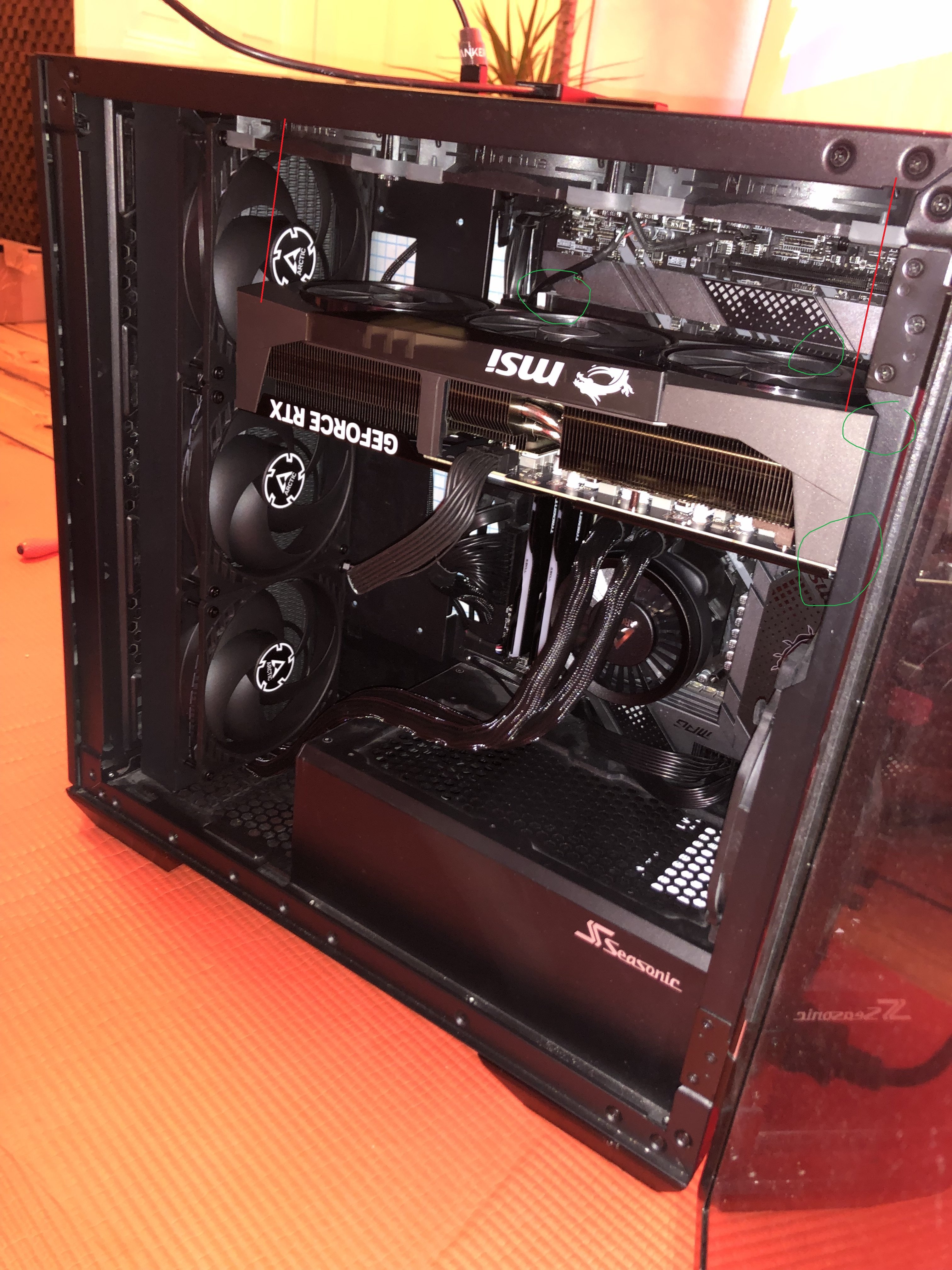 Entweder verkaufen, andere cpu holen und hoffen bisschen plus zu machen, oder das ganze Kühlkonzept anpassen (was du du so oder so solltest, da dieses case murks ist und die Lüfterkombi keinen sinn ergibt) oder du senkst den takt auf z.b. 5,4 ghz, machst undervolting und merkst Performancetechnisch keinen Unterschied, da du eh im Gpu-limit bist.