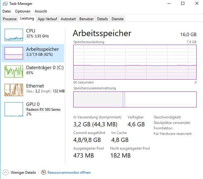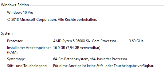 Leider habe ich ein Problem mit dem RAM. Unter Windows zeigt mir das System zwar 16 GB an aber verweist gleichzeitig darauf, dass lediglich 7,94 GB verwendbar seien.