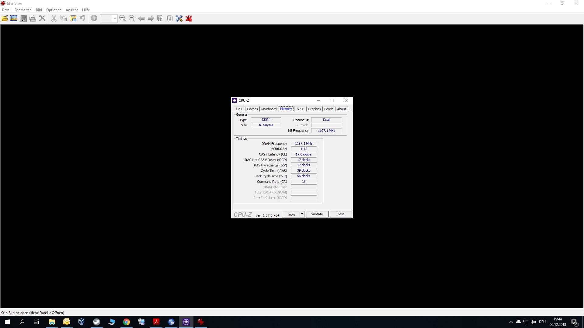 Was wird unter Windows angezeigt? U.a. mit dxdiag oder den Task Manager, CPU-Z. dxdiag zeigt 16 gb an CPU Z auch siehe Bilder