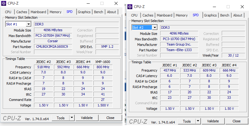 Hier sind noch weitere Bilder von CPU-z mit den namen und den Daten von den RAM riegeln.