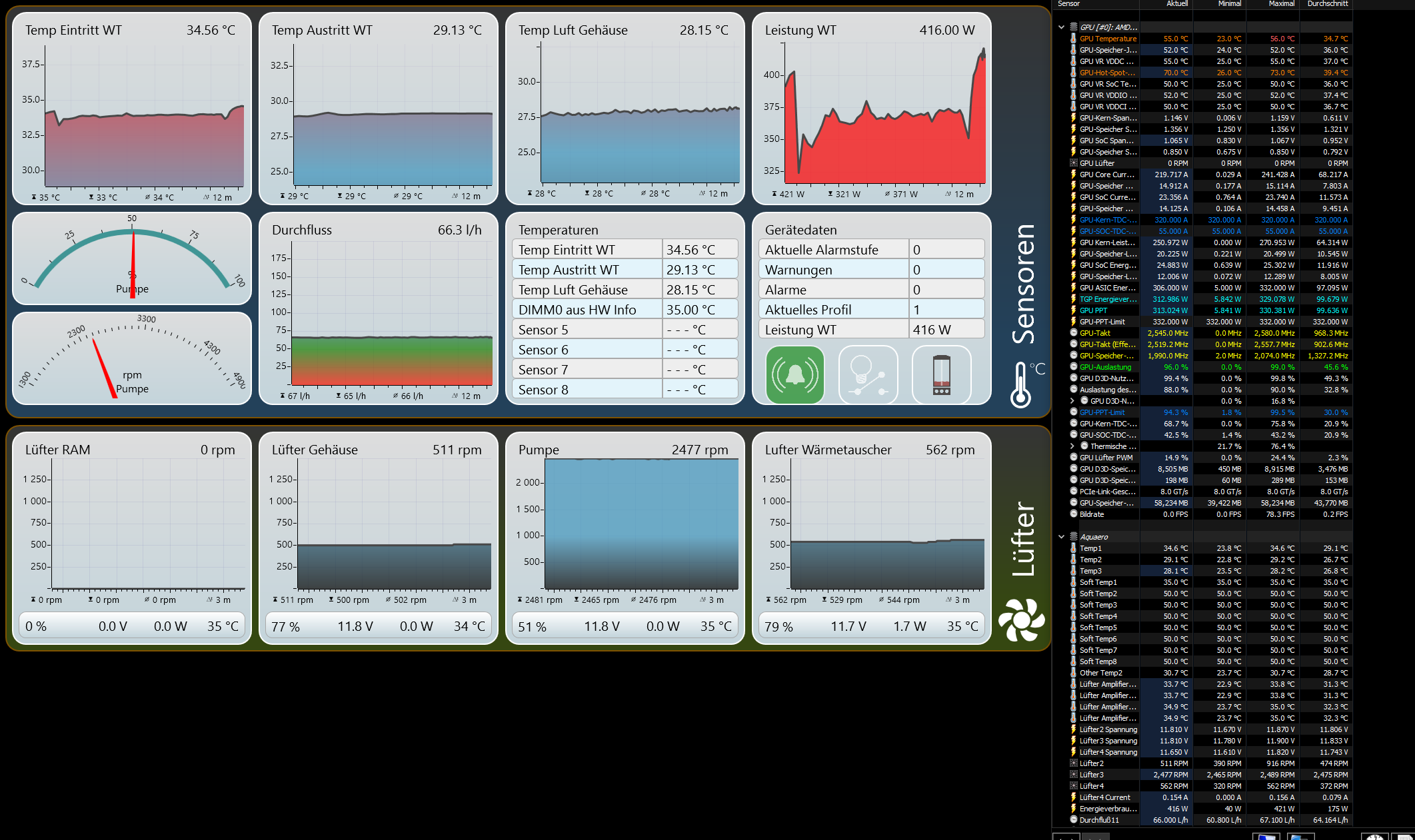 52° auf der GPU bei 33° Wasser. Also könnte man bei dir vllt. noch was raus holen. Durchfluss hab ich so ca. 110 Liter pro Stunde.