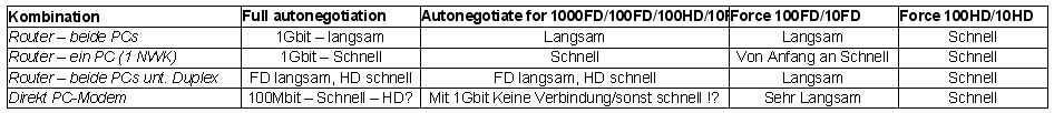 - Bei "Full autonegotiation" oder "Autonegotiate for 1000FD/100FD/100HD/10FD/10HD)" bzw. "Force 100FD (auch 10FD - da hatte ich nur 2Mbit)" habe ich diese einbußen. Auto 1000HD bzw. Force 1000FD/HD gibt's nicht.