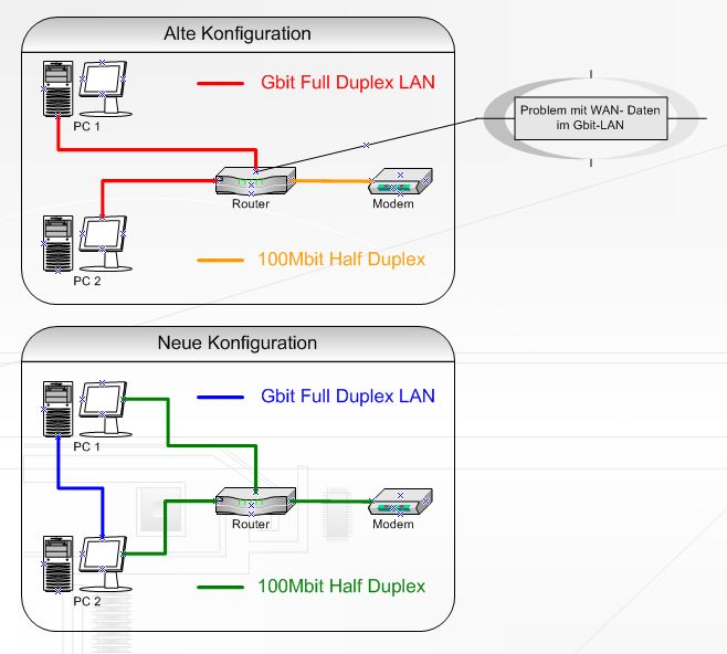 Und tatsächlich - gibt es mit dem Einsatz eines Gbit-Switches (
