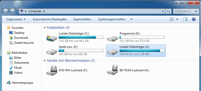 1TB Festplatte (extern) wird nur als 1,38MB erkannt