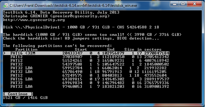 Also 345GB in etwa hab ich noch zur Verfügung! Und TestDisk hab ich auch schon durchlaufen lassen, es erkennt auch die gesamt Platte und liest diese auch aus, dann am ende kam aber iwi ein problem auf.