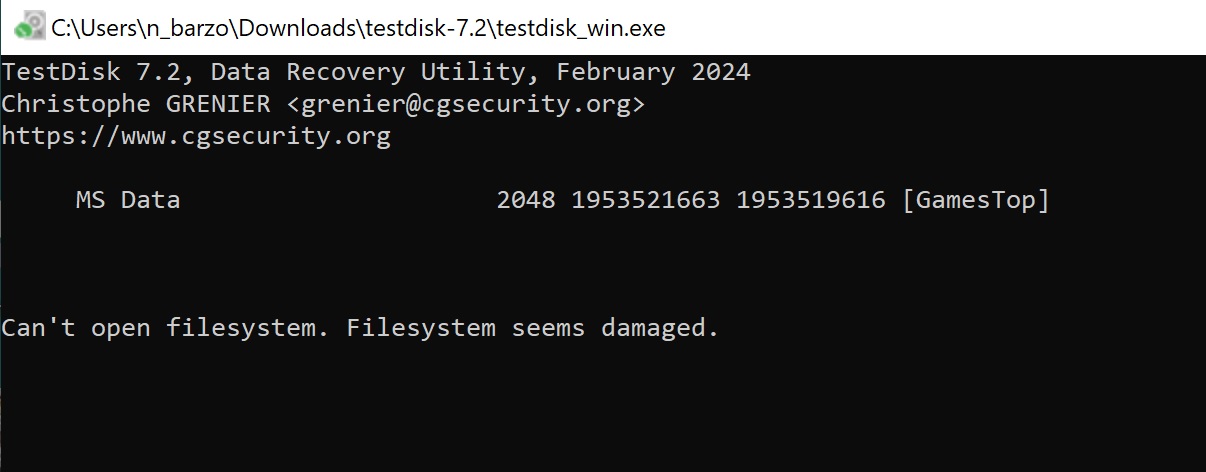 "Enter to continue" auf "NTFS found using backup sector." hat er "no partition found or selected for recovery".