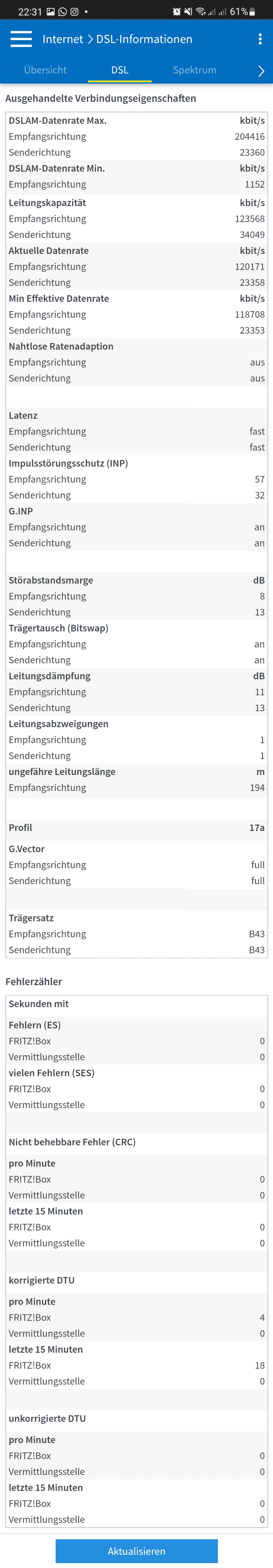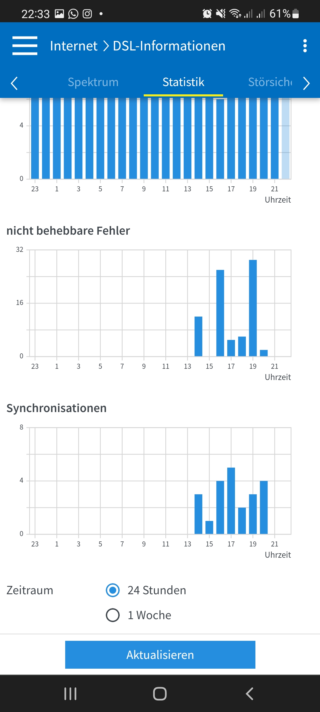 Habe jetzt mal die Daten meiner fritzbox angefügt. Heute war es besonders schlimm, bis 14:00 Uhr alles gut und ohne Störung, danach im 30 Minuten takt.
