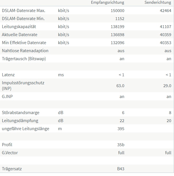 Würde ich nicht machen, die genannte Grenze kann man sich ja mit seinen Störenstellungen feintunen, da würde ich lieber Supervectoring aktiv behalten und mache eine Entgeltminderung, die am Ende dazu führt, dass ich immerhin 120 Mbit/s bekomme, aber trotzdem nur für 100 zahle.TP555 schrieb:Also bei den Vielen Fehlern, lass dich auf 100 Runterstufen und ok gut ist, die Leitung ist selbst mit 136Mbit/s an der Kotz Grenze.