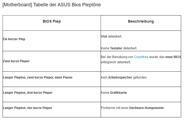 Nun habe ich alles soweit angeschlossen, nur ertönt kurz nach dem Start folgendes Piep-Reihenfolge: