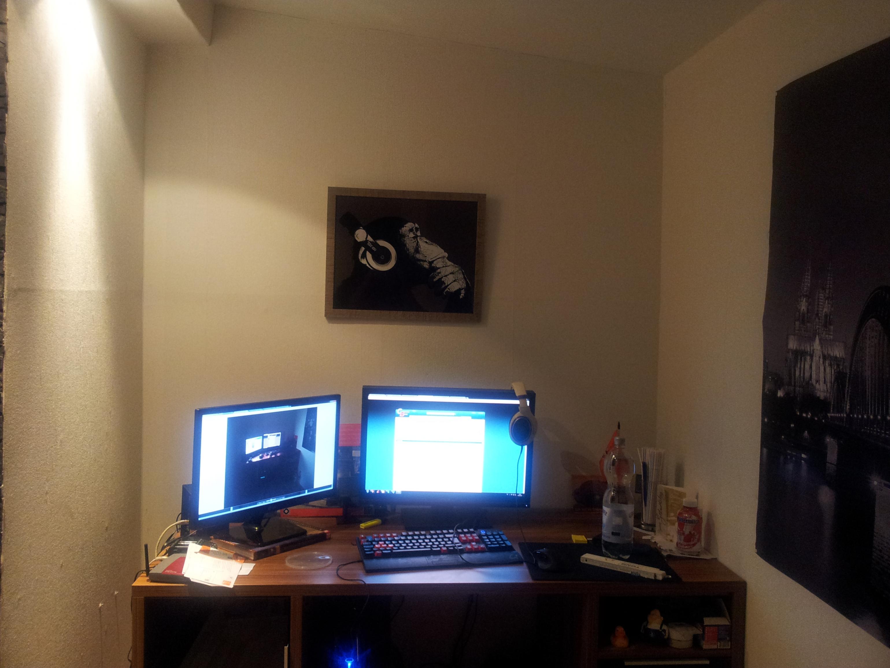 Im Anhang sind zwei Bilder, welche euch den ungefähren Platz verdeutlichen soll. Würde ungerne etwas unter dem Schreibtisch stellen, da ich meine Beinfreiheit brauche :D .