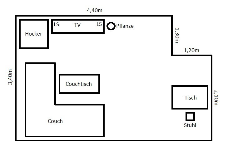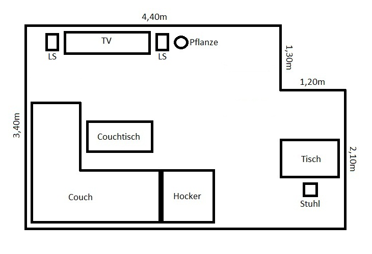 Die Lautsprecher sollen wandnah (Abstand 1,8cm) neben den TV (Breite 95cm) gestellt werden.