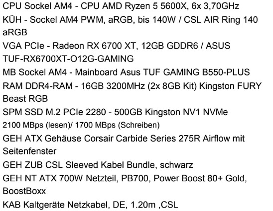 (Bitte tatsächlich hier auflisten und nicht auf Signatur verweisen, da diese von einigen nicht gesehen wird und Hardware sich ändert)