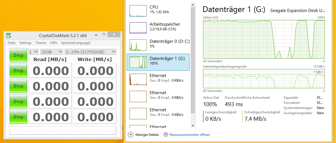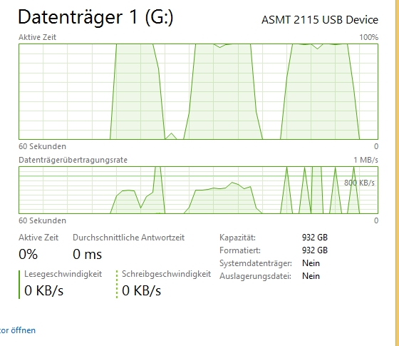 Festplatte wird erkannt aber die schreibraten sind unterirdisch