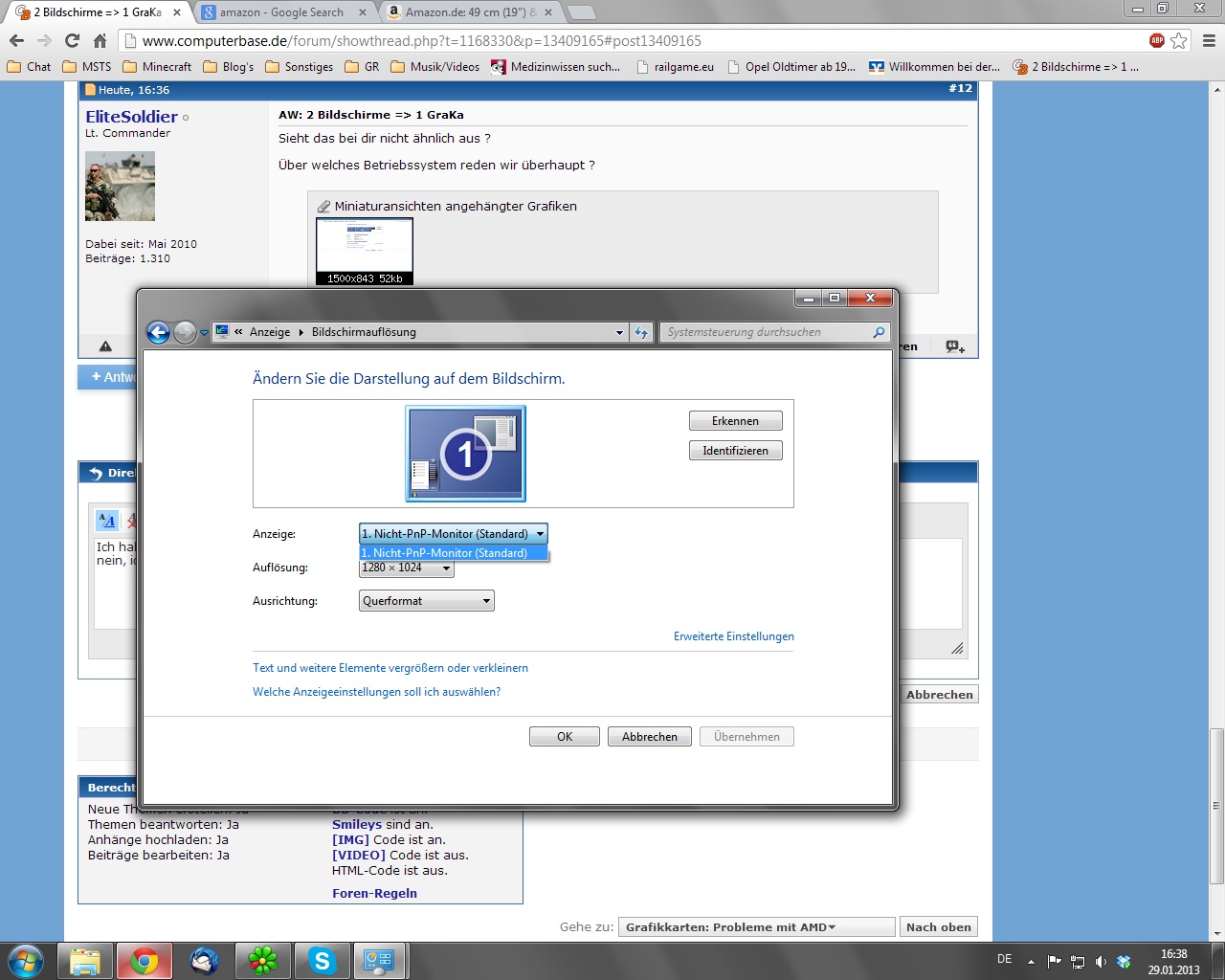 Drum hab ich mir gedacht, kaufst du dir einfach nen VGA Splitter, bei Amazon groß damit angekündigt 2 Bildschirme an einen Rechner anschließen - hm, schiefgelaufen. Der Splitter Spiegelt das Bild von Desktop 1 zu Desktop 2 zu 100% wieder. - war ja nicht der sinn..