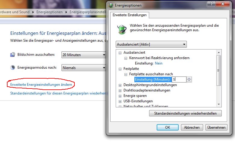 Ich weiß das es funktioniert da sich die festplatte sich nach ungefähr 1 stunde ausschaltet nur würde ich es gerne auch manuell einstellen könn da ich manchmal nur 2 minuten auf der festplatte bin aber die festplatte läuft dann für ne stunde.
