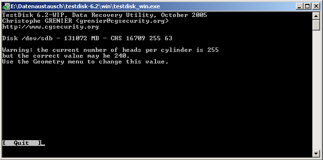Durch das Forum wurde ich auf das Tool Testdrive aufmerksam. Nach Starten des Programmes (Windows-Version) fiel mir auf, dass Testdrive die Platte mit einer Größe von 131069 MB und 16709 Zylindern anzeigt (diese beiden Daten werden ja auch in der FAQ erwähnt).