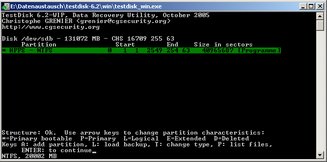 Zwar ließ ich auch die Analyse durchlaufen (und es wurde mir auch eine Partition angezeigt), aber weiter habe ich mich nicht getraut.