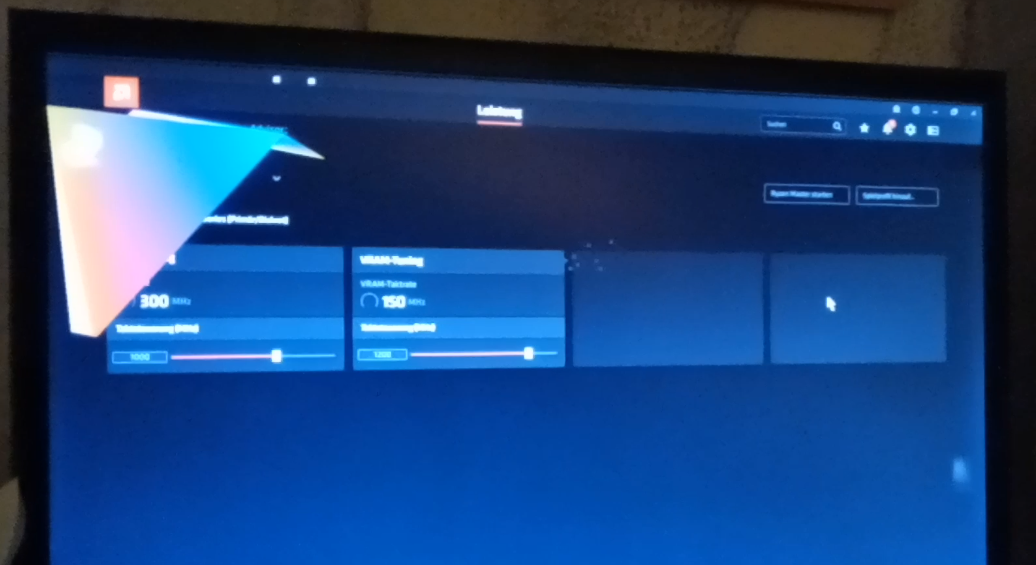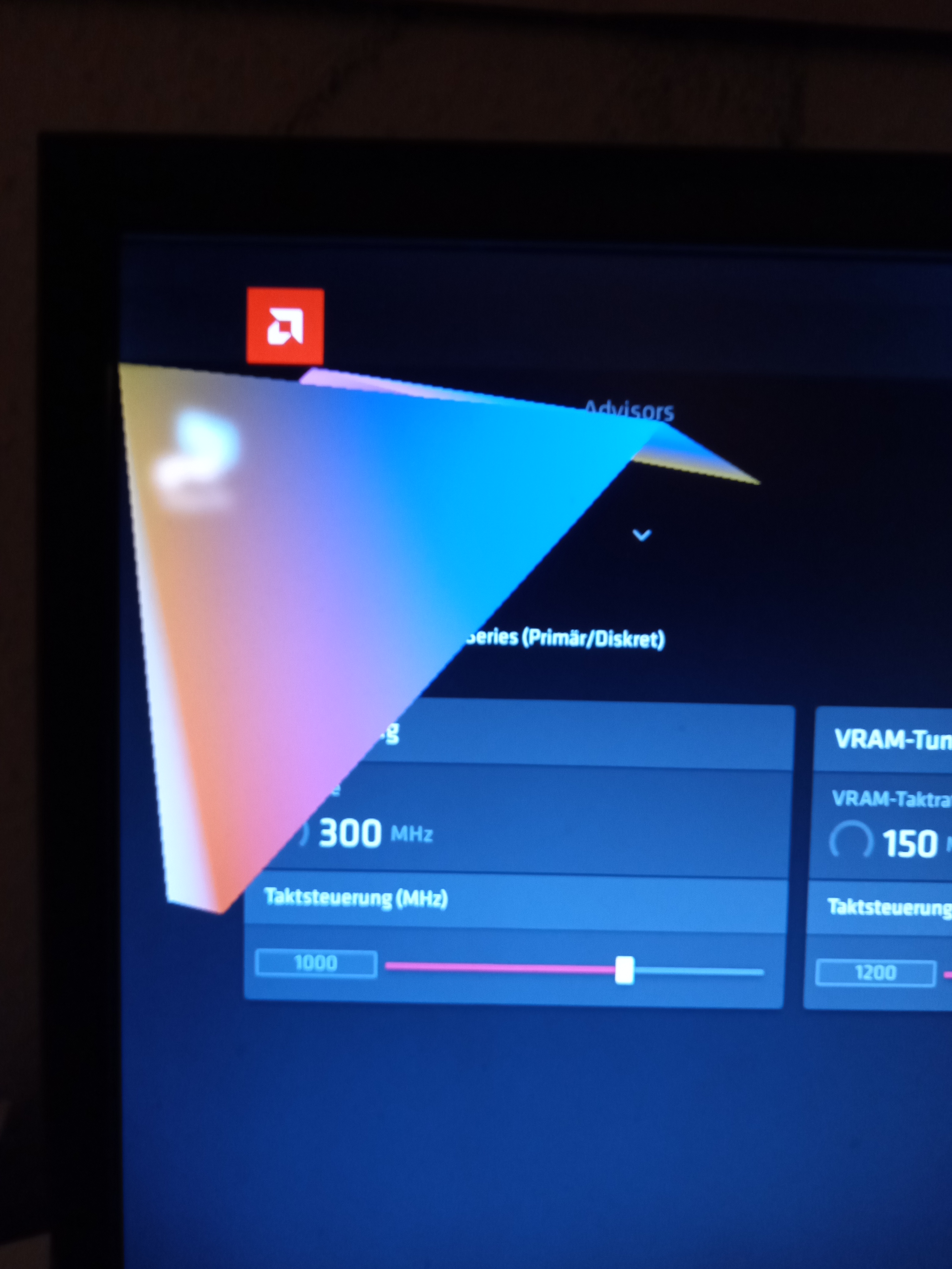 - in der Treiber Software wurden GUI Elemente falsch oder nicht mehr angezeigt und es erschien ein großes buntes Dreieck oben links -> siehe Bild