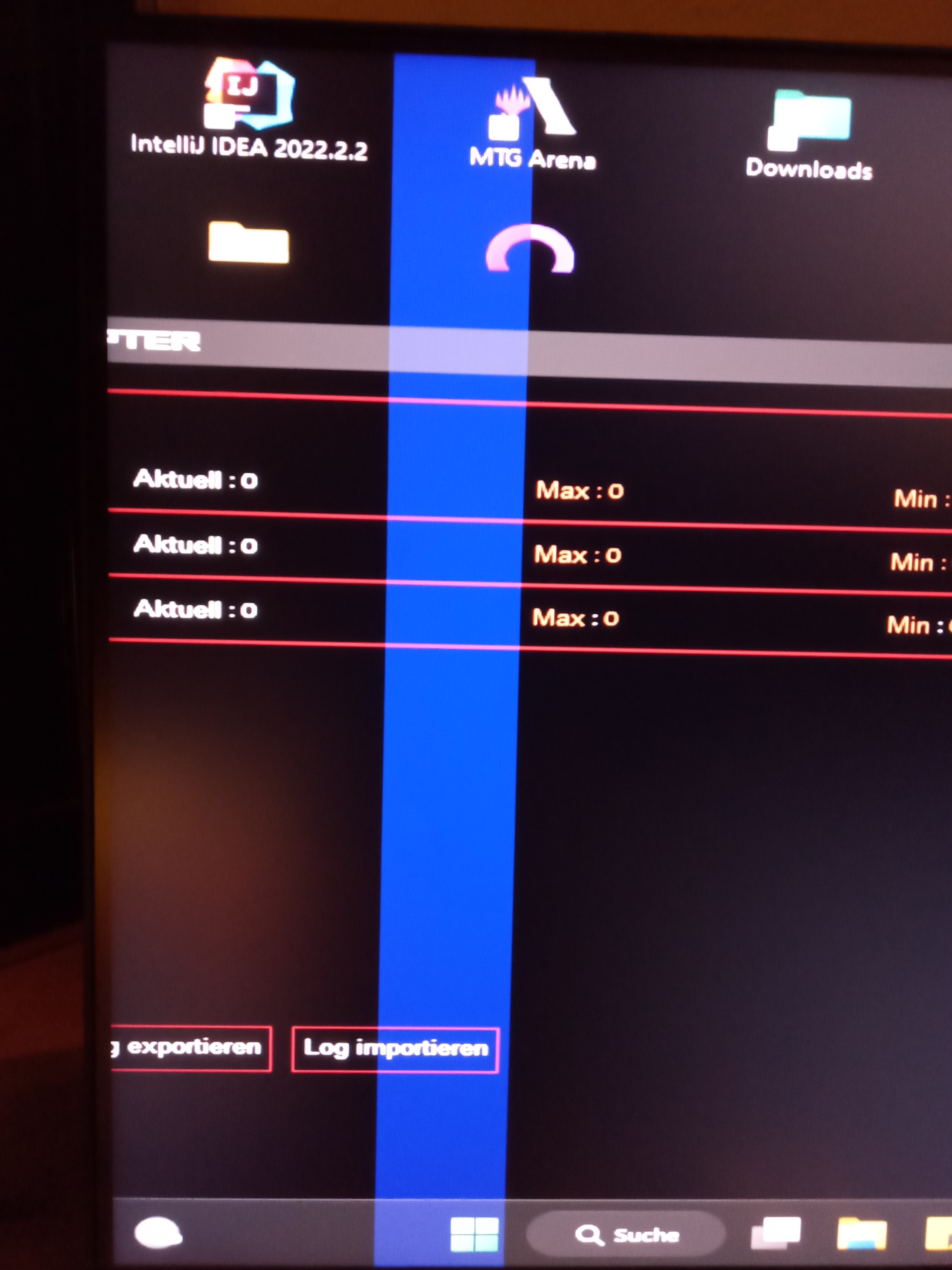 - ein senkrechter blauer Streifen unter Windows 10 -> siehe Fotos