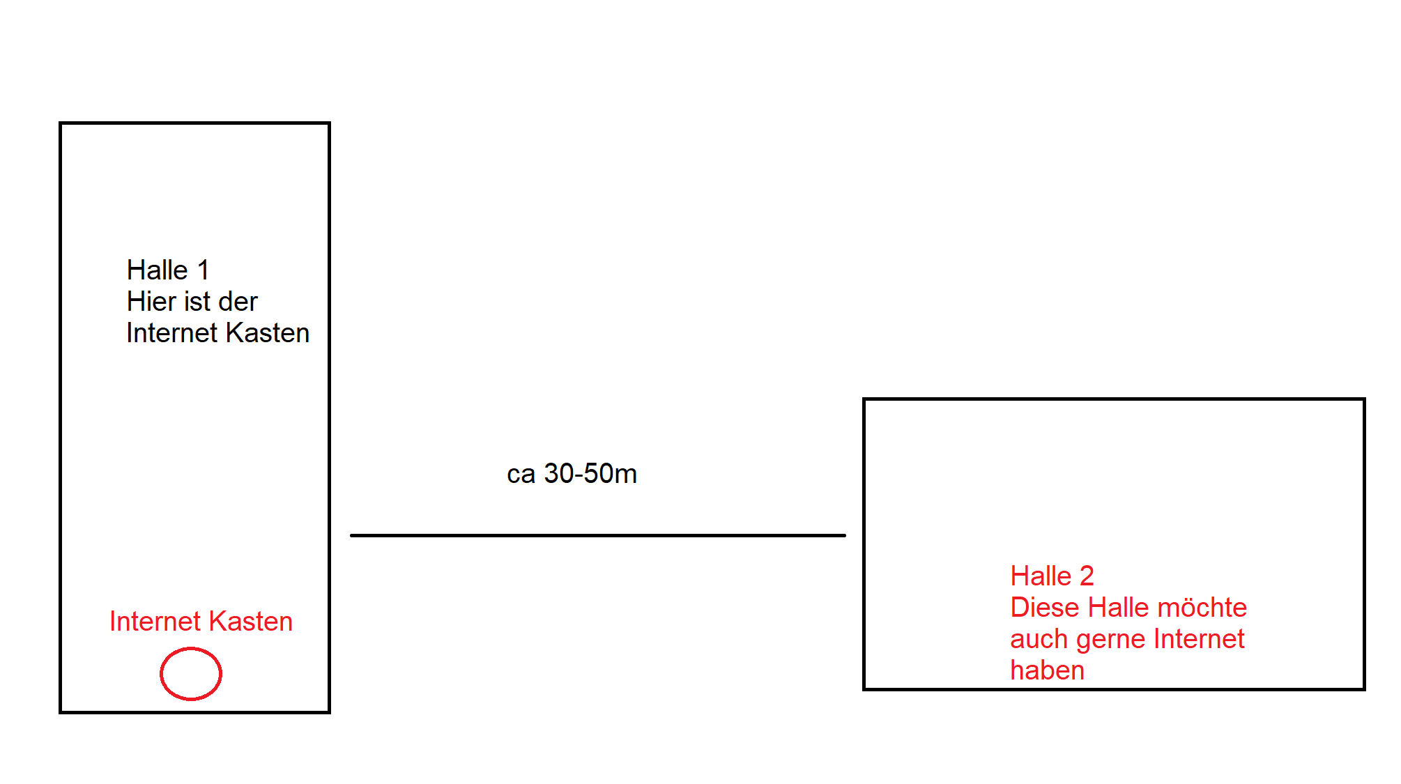 Was könnte man tun, um die Halle 2 auch mit Internet zu versorgen ?Repeater? Richtfunk Module?