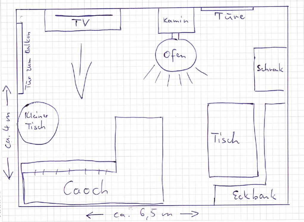 Vom TV zur Coach sind es ca. 2,5 bis 3 Meter.