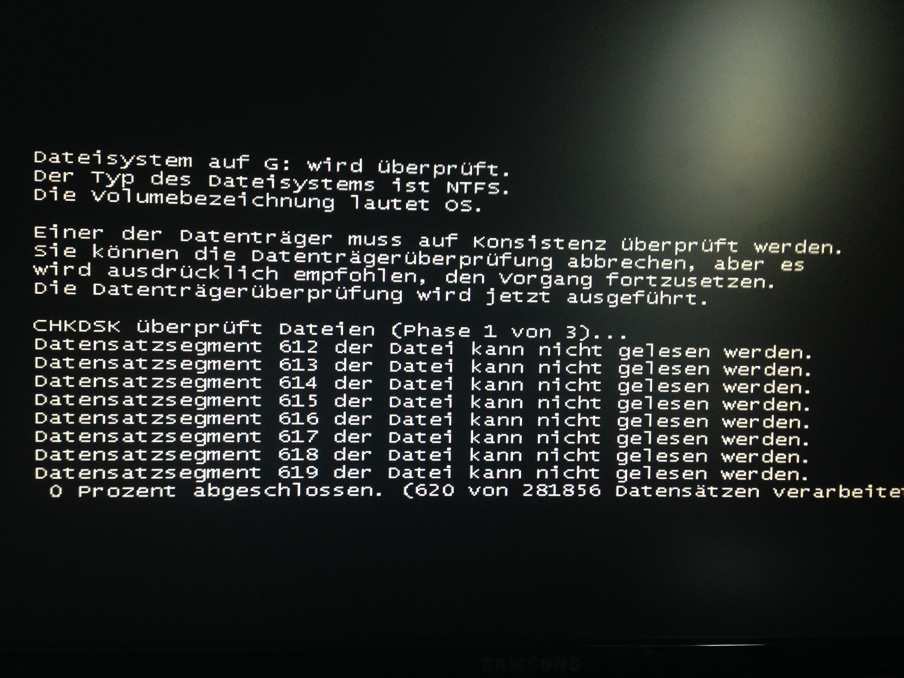 sondern beim Start meistens CHKDSK läuft un beschädigte Datensatzsegmente erkennt (Siehe Bild im Anhang).