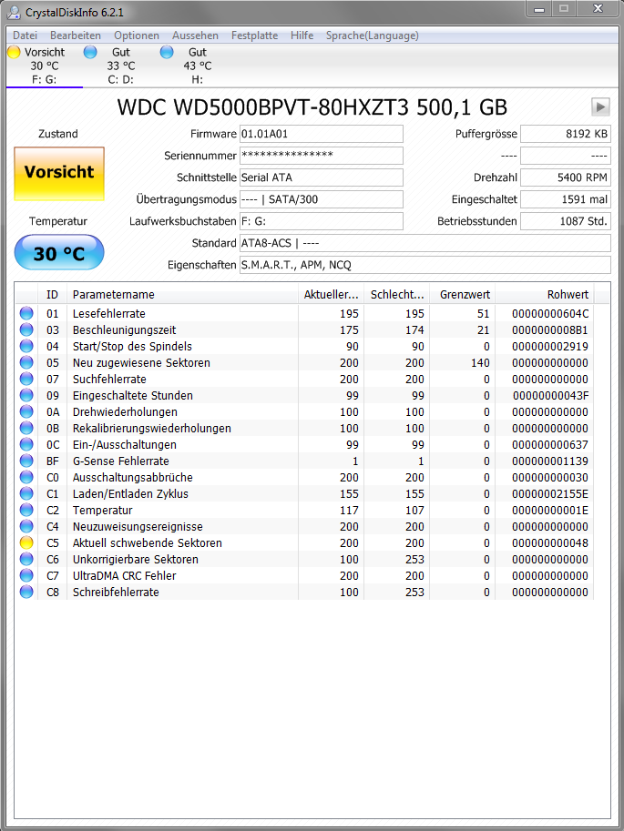 -Selbes Problem wenn die Festplatte in meinen Desktop Pc eingebaut ist.