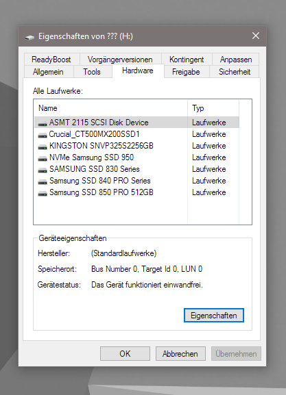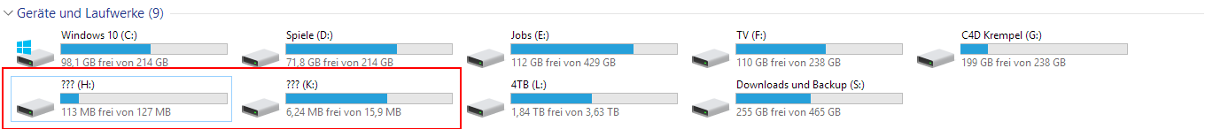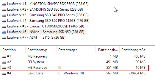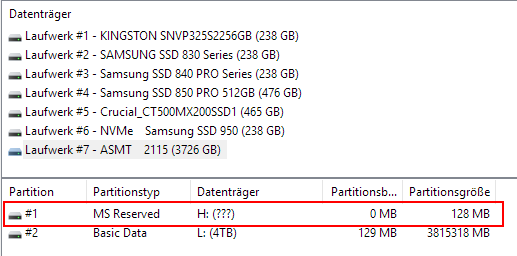 Mir wurde ständig ein nicht nicht formatiertes Laufwerk im Explorer angezeigt. Ich habe es mal formatiert und es hat 16MB. Allerdings wird es in der Datenträgerverwaltung nicht angezeigt. Wie finde ich heraus, zu welchem Laufwerk die Partition gehört? Ich habe 6 SSDs verbaut unde s sind keine Kartenleser angeschlossen.
