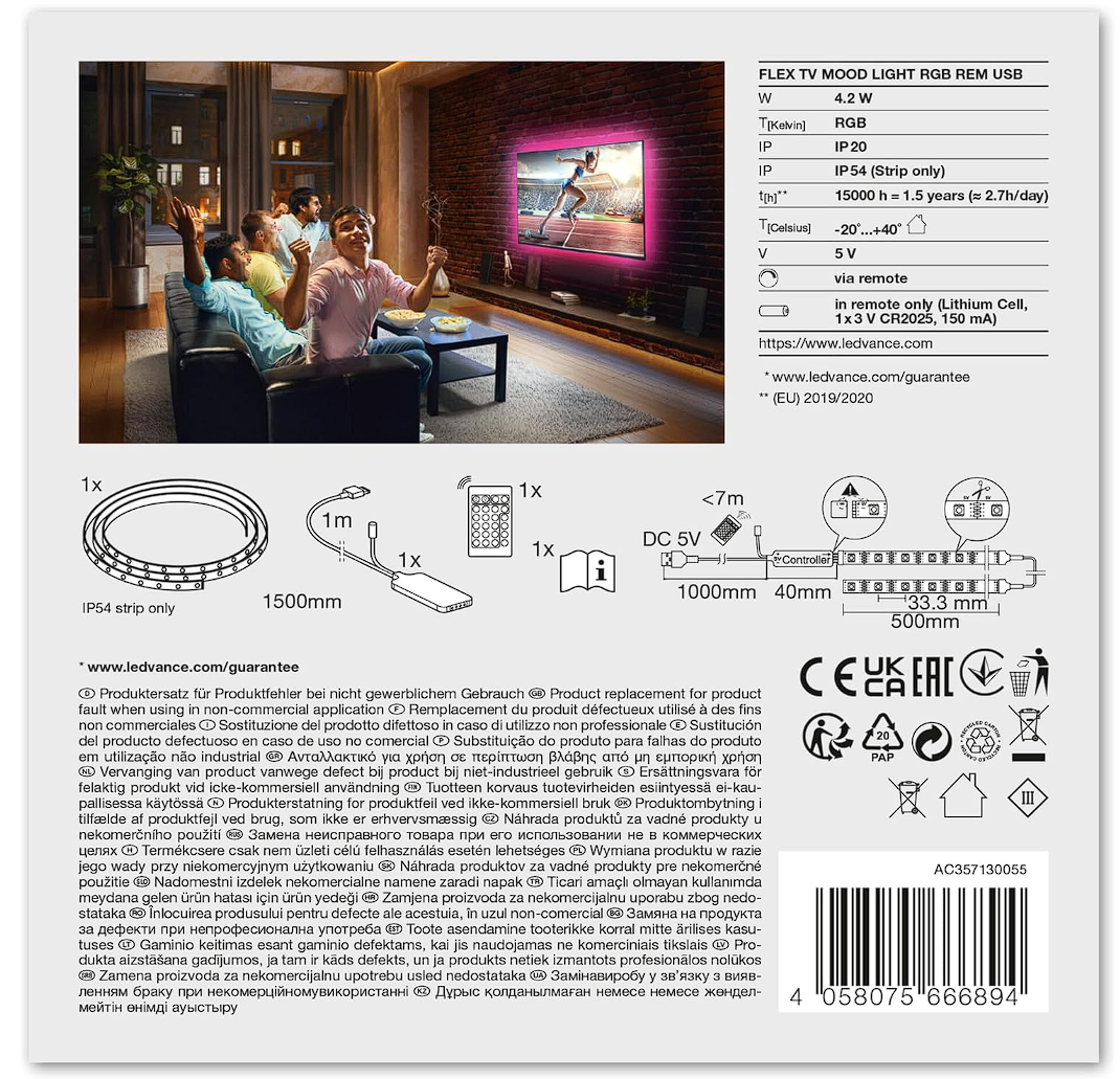 ich suche eine relativ spezielle Lösung für ein Regal, bei dem ich zwei Fächer von oben beleuchten möchte (-> Regal+zu beleuchtende Fächer siehe Bild). Ich habe derzeit von Ledvance ein "Flex TV Mood Light" (-> Bild mit Aufbau angefügt), das ziemlich gut für die Fächer passt. Das ist jedoch nur mit der Fernbedienung zu steuern und geht mir langsam etwas auf die Nerven...