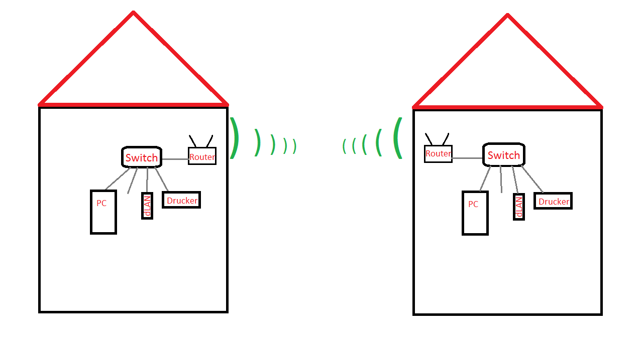 Ein 2. Linksys stellt eine Funkbrücke ins andere Haus her.