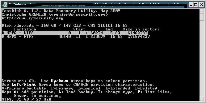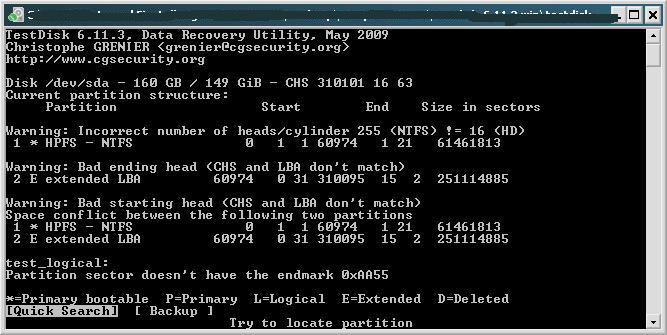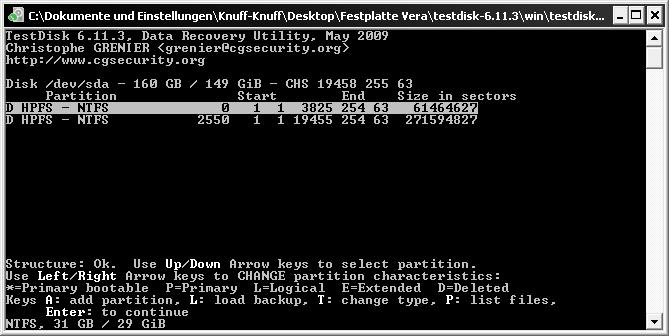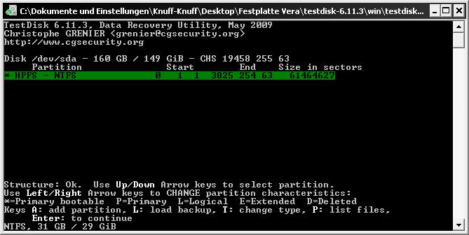 Habe mit TestDisk versucht die Partition wiederherzustellen. Leider ohne erfolg...